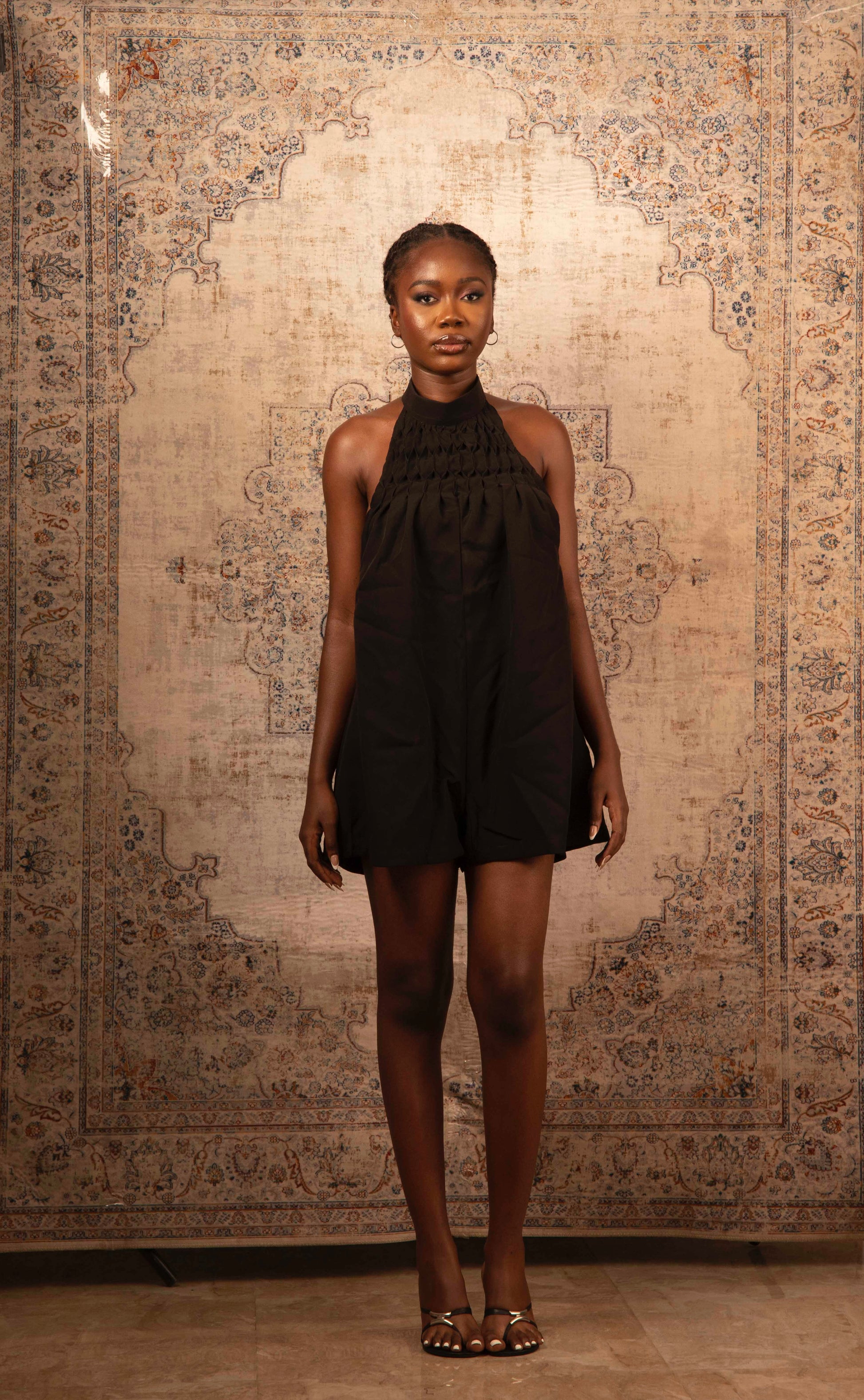 This halter-neck playsuit is a modern twist on our signature silhouette, designed for ease and elegance. Crafted in flowy crepe, it features the same beehive smocking detail across the chest and a built-in bra for gentle support. The relaxed fit flatters all body types, with an elasticated back and discreet side pockets for added functionality. Perfect for daytime adventures or evening soirΓ©esβsimply slip it on and go.